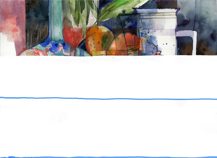 Hope you had a great weekend and made time to play. For the past 2 weeks I have been sitting with this new still life and thinking about the arrangement of my thoughts/ideas and how to compose them on paper. Come along let me try to dissect and share some of my thoughts. Hope these strategies will be also be helpful for you.
