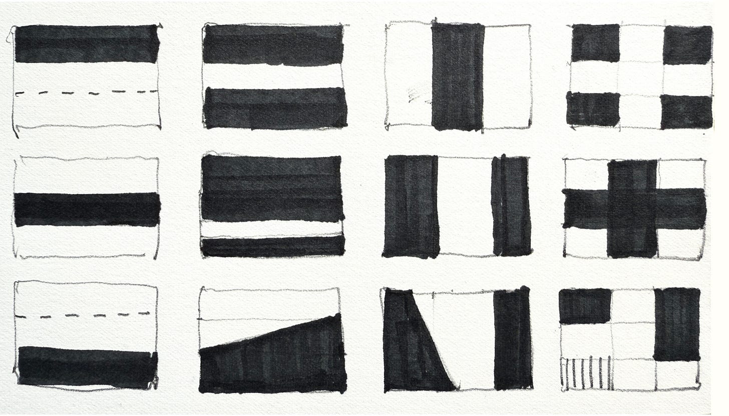 Let me show you a simple creative exercise that I use to think about stage space and the visual weight of my creation. Simply divide the paper space into 3 rows and 3 columns. Then start shading and watch how the spaces are compressed and manipulated. Notice the mood, movement and how they appeal to your eyes.