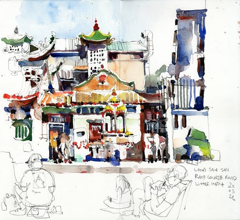 Many students have asked me this very pertinent question when they watch me sketch and paint. Many are constantly surprised that I often start with my brush and paint with no under drawing. I get this surprised look that it is perfectly alright to go back and forth with my pencil and brush. There are exceptions and occasions when I do have to create a finished drawing and before adding watercolour washes. Check out my sketching demo video to see this approach in real time.