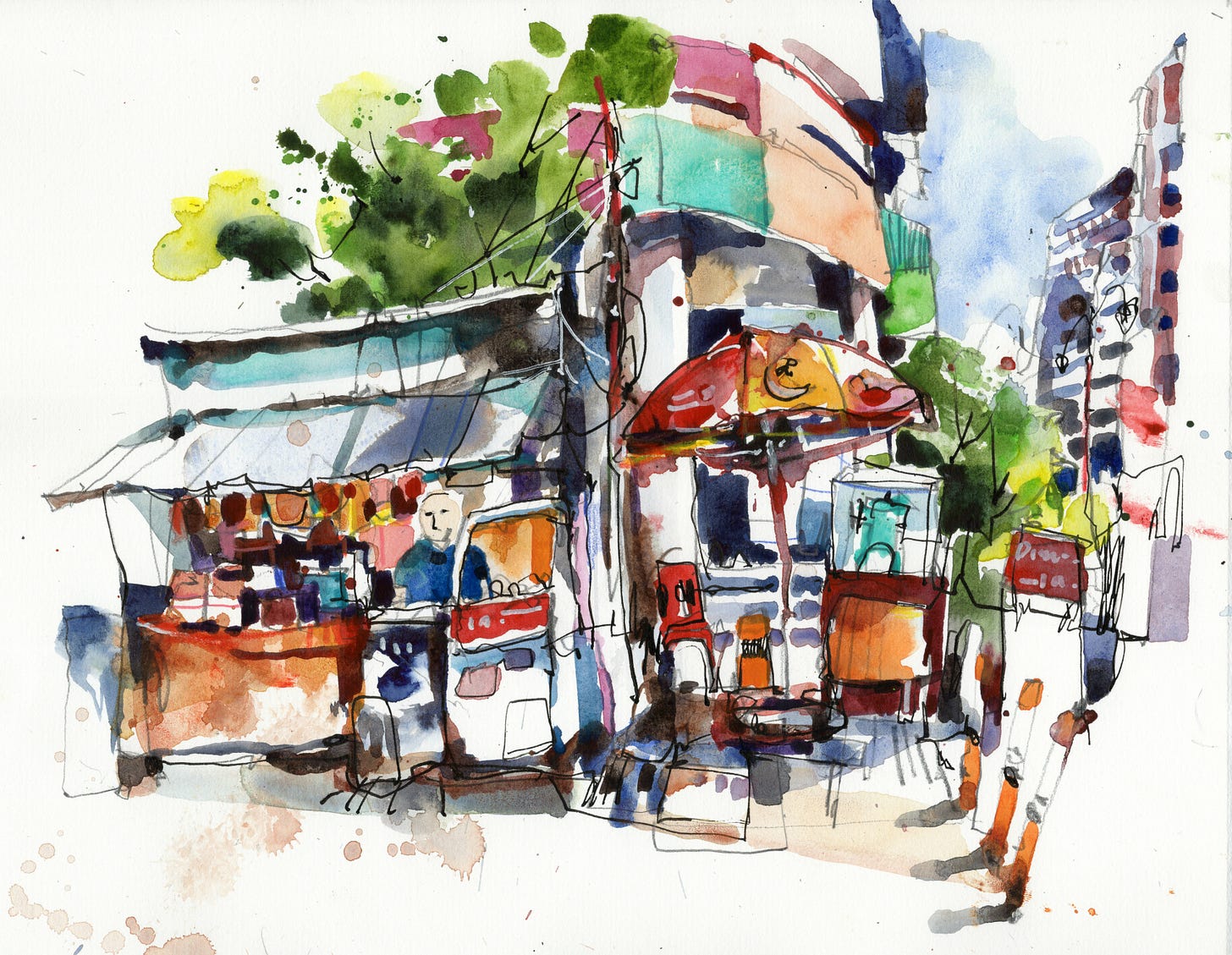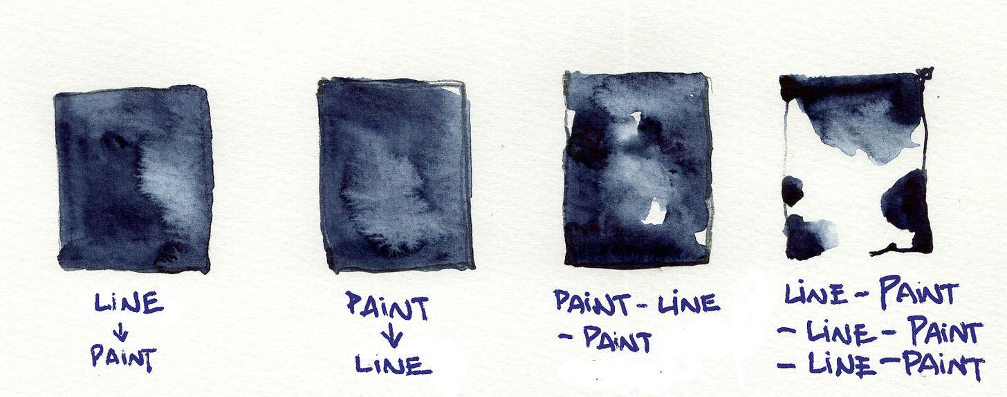 Which do you do first when you create a sketch or painting? Do you create a complete and detailed drawing before adding watercolour washes? Have you tried painting without lines and a detailed drawing?