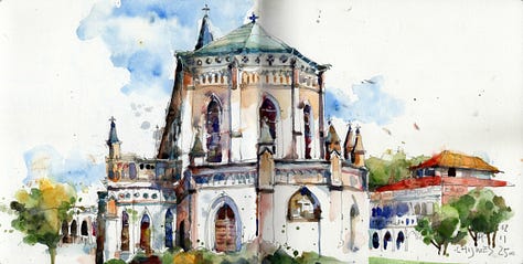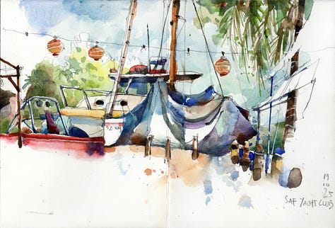 Sketch 3 - This is a combination of Sketch 1 and 2. I hope you can see how I have used 3 very distinct techniques to sketch and paint the same scene. Same same but different.